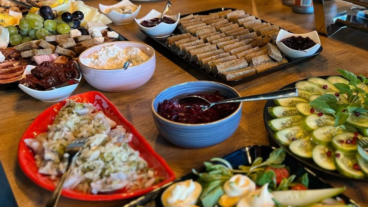 Posiłek w takim miejscu wygląda tak, że po zapłaceniu otrzymujemy talerz, a następnie możemy wybierać jedzenie ustawione na stole. Co ważne, podobnie, jak w hotelowych restauracjach, możemy sobie dokładać. W menu znajdziemy m.in. jajecznicę, kiełbasę, makaron z twarogiem. Poza tym warzywa, owoce (jabłka, arbuzy, kiwi, winogrono) oraz dodatki - pieczywo, sery i różnego rodzaju sałatki.
