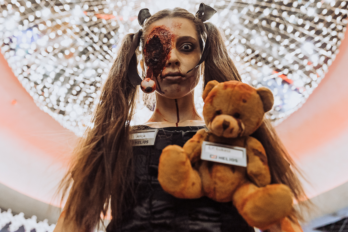 Pracownicy kina z tej okazji byli specjalnie ucharakteryzowani. Już na wejściu do Heliosa było przerażająco.