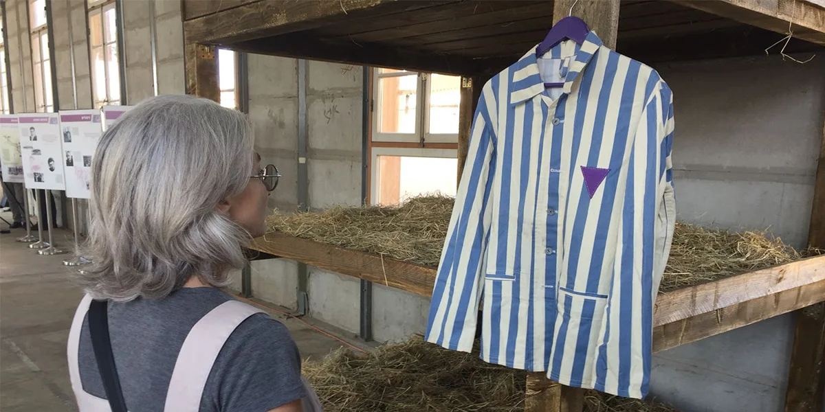 Obozowy strój z fioletowym trójkątem przeznaczony dla więzionych Świadków Jehowy / fot. JW.ORG