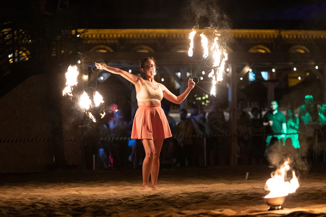 Za trzeci tego wieczory segment ogniowych atrakcji odpowiedzialni byli artyści z Flamin’ Angel. Pięcioosobowy zespół zaprezentował występ z elementami żonglerki, któremu towarzyszyła muzyka elektroniczna. Po tym show widzowie zobaczyli White Night, czyli ukraiński duet, który wykonał taniec brzucha z ogniem i elementami pirotechnicznymi. W finale wieczoru zgromadzona publiczność miała szansę zobaczyć wielką choreografię, w której wzięli udział wszyscy występujący tego wieczoru.