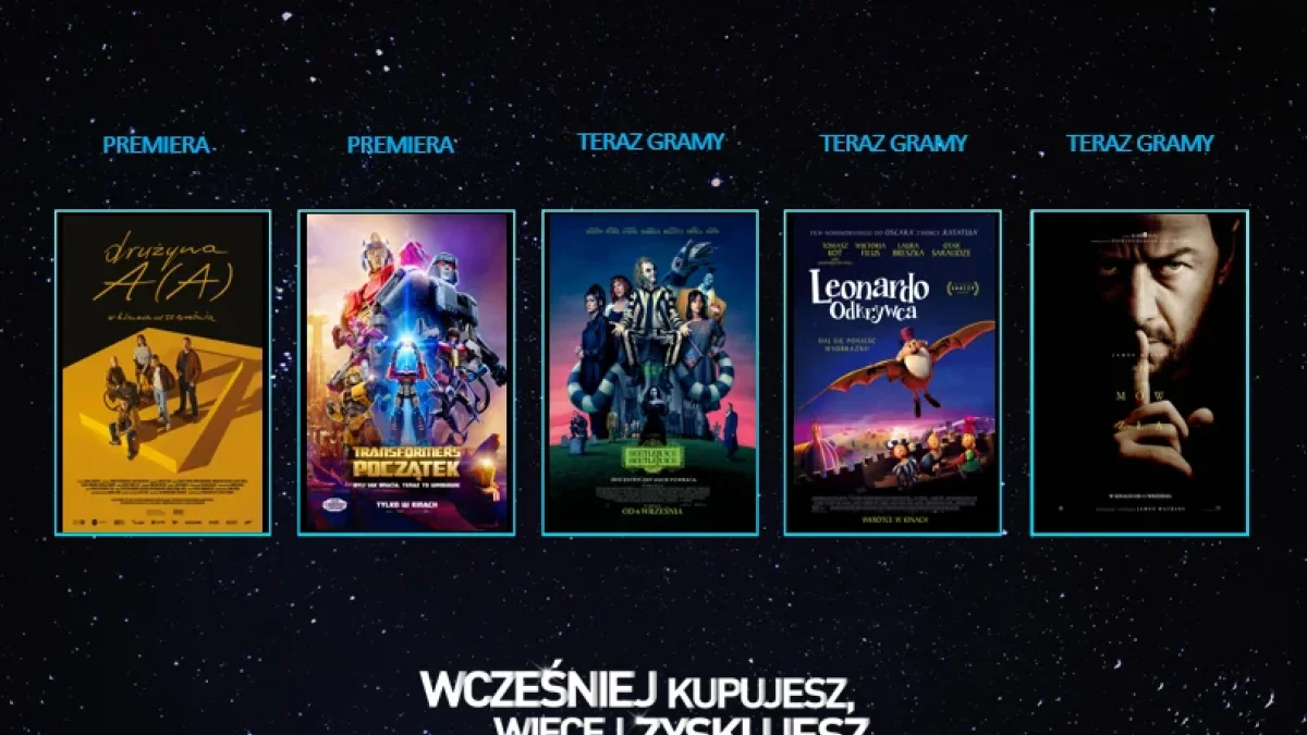 Nowością dla kinomanów w każdym wieku jest porywająca animacja „Transformers: Początek”. Tytuł powraca do początków serii i ukazuje miejsce, w którym wszystko się zaczęło – planetę Cybertron, skąd pochodzą Transformery. Główni bohaterowie, Optimus Prime i Megatron, są przyjaciółmi i traktują się jak bracia, jednak ten drugi przechodzi wewnętrzną przemianę i staje po stronie zła. Widzowie będą mogli przekonać się, co tak diametralnie odmieniło Megatrona, jak również zobaczą, w jaki sposób rozpoczęła się wojna między Autobotami i Deceptikonami. W wybranych lokalizacjach film będzie wyświetlany także w ukraińskiej wersji językowej.