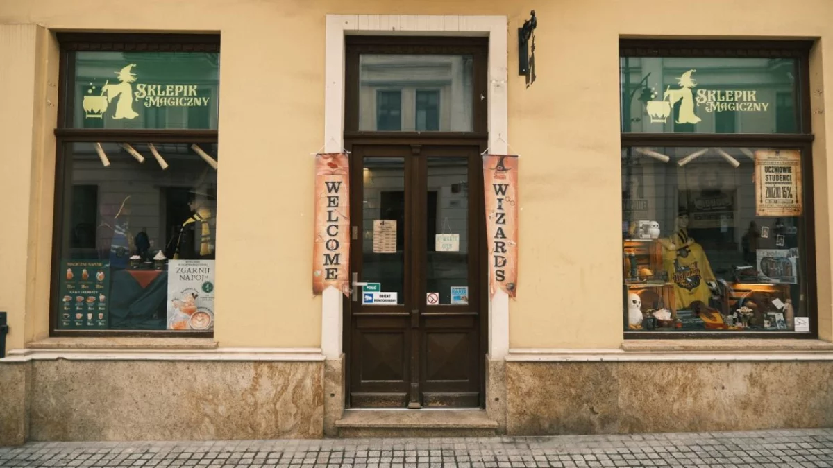Wnętrze Sklepiku Magicznego przy ul. Piotrkowskiej 18 zostało zaprojektowane tak, by od pierwszego kroku przenieść odwiedzających prosto do świata inspirowanego Harrym Potterem. Brukowana podłoga, klimatyczne latarnie i okna na ścianach tworzą atmosferę przypominającą słynną ulicę Pokątną. Wśród zakamarków tego miejsca kryje się nie tylko bogaty asortyment licencjonowanych gadżetów i akcesoriów niebędnych czarodziejom, ale także przytulna Magiczna Kawiarnia, w której można odpocząć po zakupach i spróbować napojów rodem ze świata magii.Na końcu brukowanej uliczki czeka Magiczna Kawiarnia, działająca od końca 2024 roku. To właśnie tutaj serwowane są napoje, o jakich marzy każdy czarodziej. W menu znalazło się słynne Kremowe Piwo, a także wyjątkowe Eliksiry Prawdy, Szczęścia i Miłości. W chłodne dni szczególnie popularne są kakao z piankami i sezonowe latte dyniowe, które rozgrzewają i przenoszą w klimat jesiennego magicznego popołudnia.