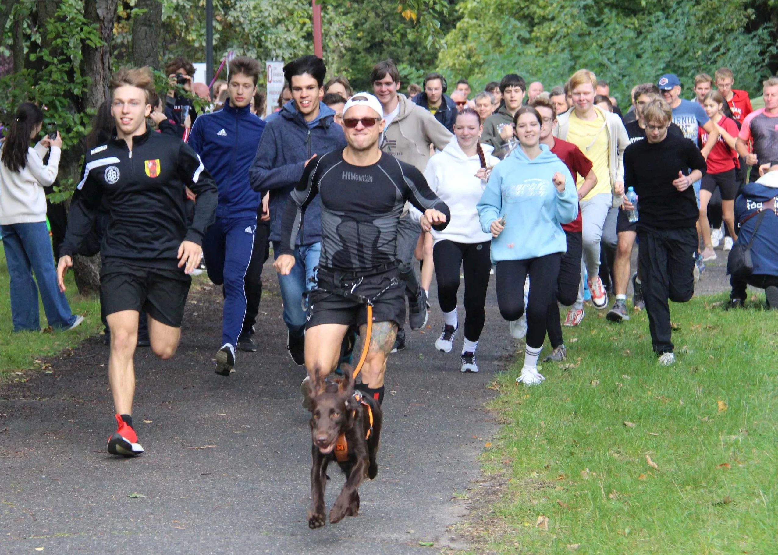 Przed biegami odbyła się rozgrzewka. Poprowadził ją pan Kamil, nauczyciel wychowania fizycznego w PLOPŁ. Poza truchtem w miejscu, przysiadami i rozciąganiem był też kankan i twist.