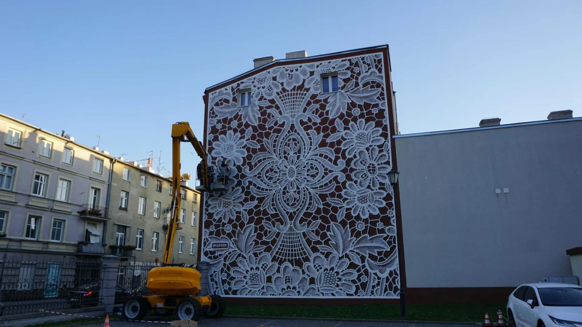 NeSpoon właśnie zakończyła prace nad muralem na elewacji budynku przy ul. Wólczańskiej 217. To koronkowa robota dosłownie i w przenośni.