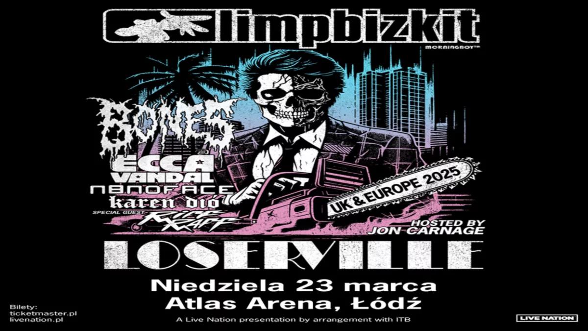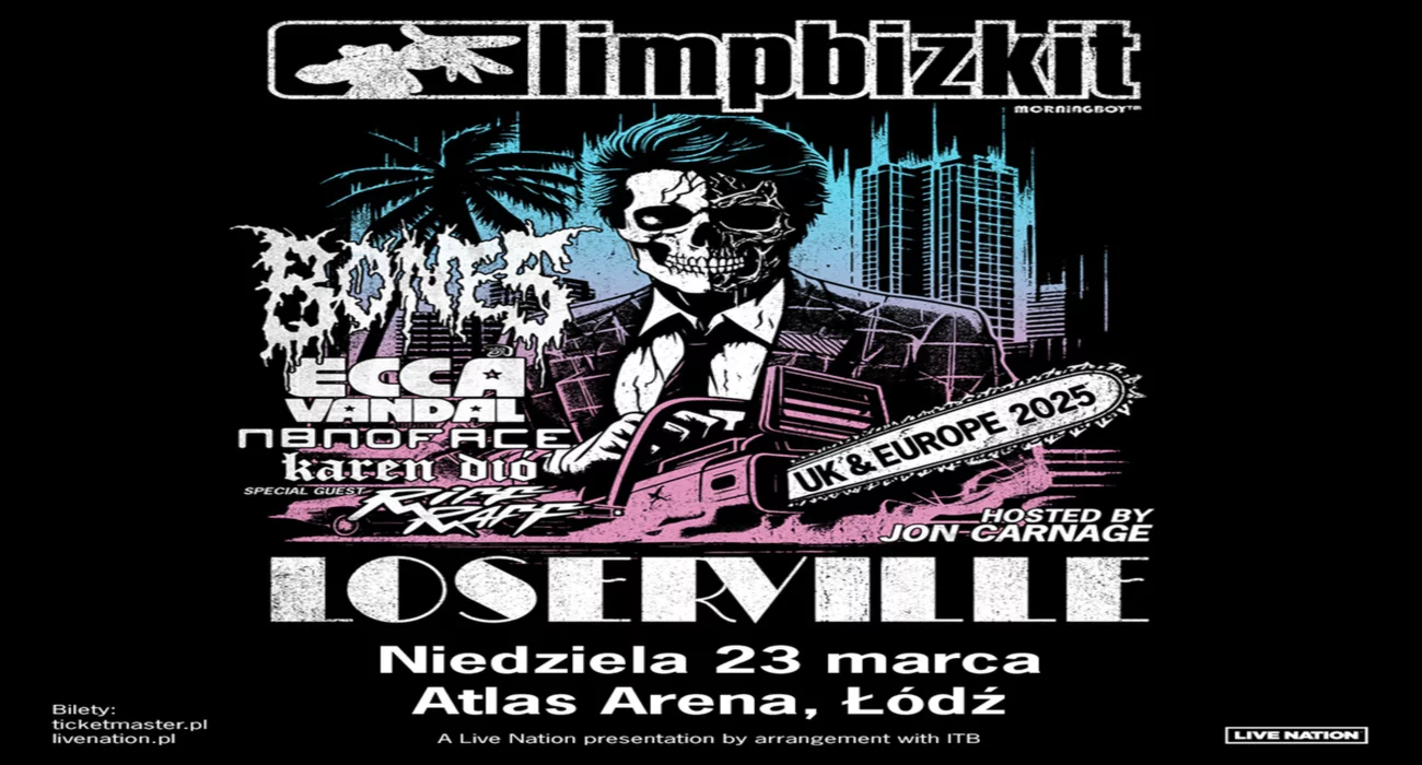 LIMPBIZKIT powraca do Europy z koncertami zaplanowanymi na 2025 rok w ramach trasy „LOSERVILLE 2025 with LIMPBIZKIT & Special Guests”. Koncert w Polsce, którego organizatorem jest Live Nation odbędzie się w niedzielę, 23 marca w łódzkiej Atlas Arenie. Bilety w sprzedaży od 25 października na www.LiveNation.pl