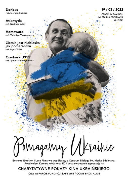 Kino od lat stanowi zwierciadło rzeczywistości, buduje świadomość wokół najbardziej istotnych kwestii dla funkcjonowania świata, tworzy przestrzeń do kolektywnych emocji, wywołuje dyskusję i impuls do działania. Dziś, kiedy za wschodnią granicą, Ukraina walczy o wolność i bezpieczeństwo całej Europy, kinematografia ukraińska stanowi ważny głos, wokół którego jednoczy się Łódź filmowa. Firmy producenckie Extreme Emotions, Lava Films we współpracy z Festiwalem Kamera Akcja oraz instytucjami kultury tj. Centrum Dialogu im. Marka Edelmana i EC1 organizują 19 marca wydarzenie “Ukraina Pomagamy”. Organizatorzy zapraszają na pokazy filmów ukraińskich, dyskusję z ekspertami oraz zachęcają do wzięcia udziału w całodniowej zbiórce publicznej na rzecz Fundacji Save Life. Come Back Alive.
