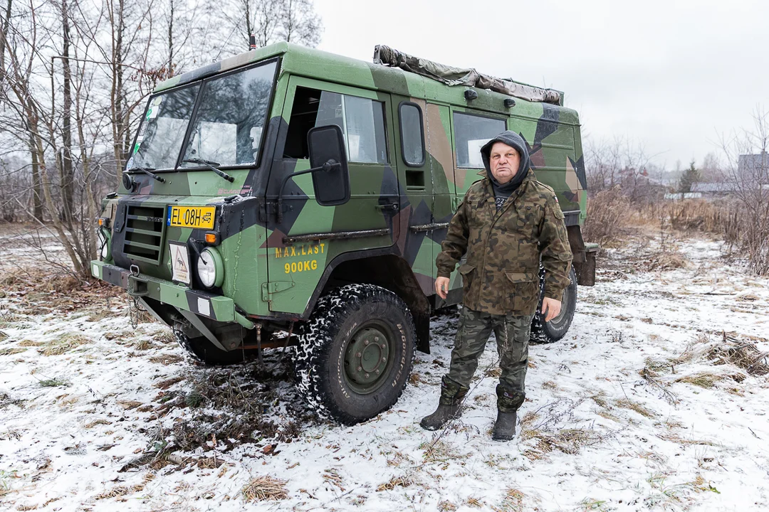 - Auto jest przystosowane do nocnej jazdy, bez świateł, nie świecą się nawet liczniki/ Wtedy nie widać nas z góry, nikt nas nie zbombarduje - dodaje Andrzej Berger. - Środek Volvo jest piękny, skórzane siedzenia. To auto niczego się nie boi, można nim przejechać przez błoto, krzaki.