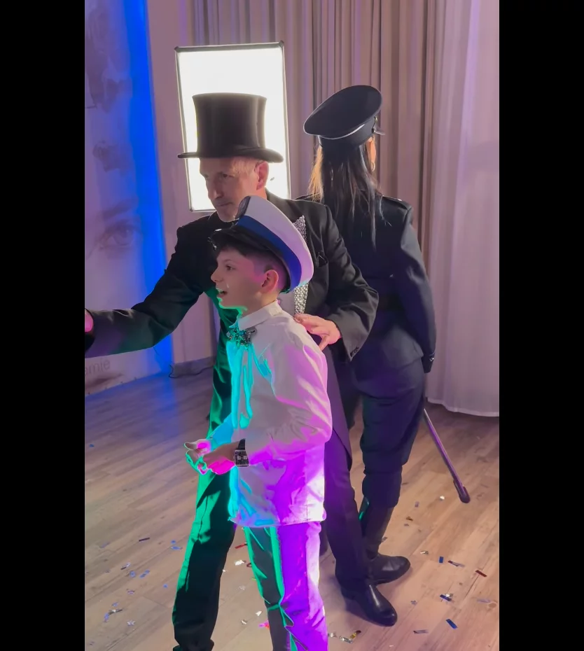 Na imprezie nie zabrakło muzyki na żywo (śpiewali również rodzice juniora), tortu, który został ustawiony na oponach BMW oraz magika, który zaprezentował m.in. sztuczkę z lewitującą asystentką.