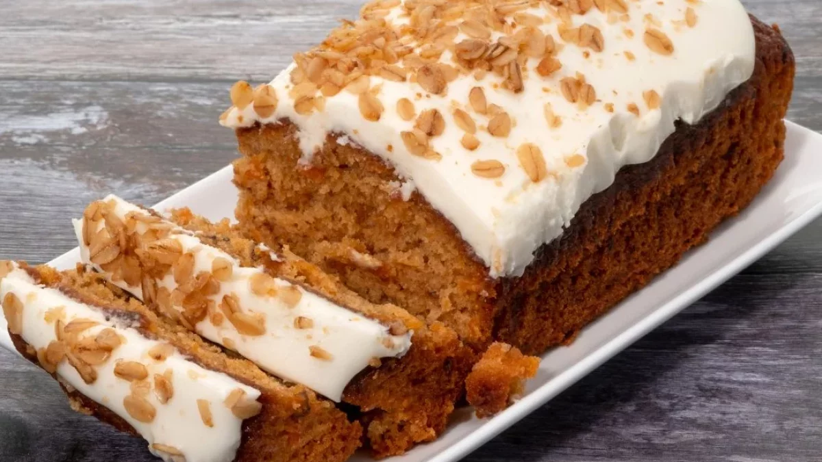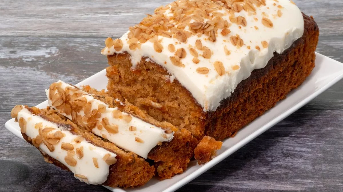 - Posmaruj kremem piernik marchewkowy. Posyp skórką pomarańczową lub płatkami migdałów.