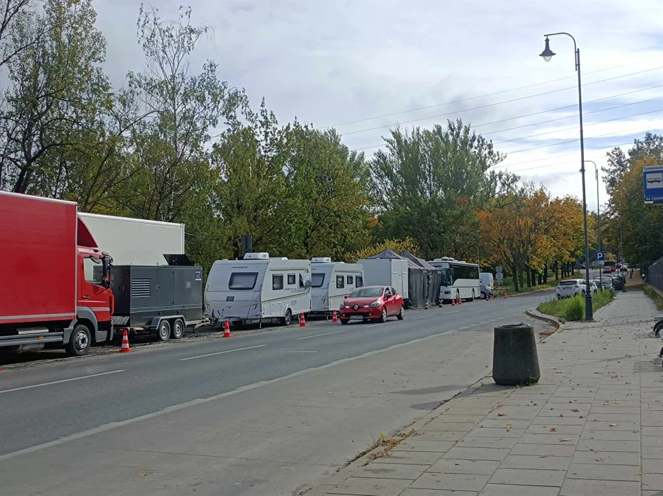 Ekipa filmowa pojawiła się na Księżym Młynie w poniedziałek 23 października już od samego rana. Zdjęcia rozpoczęły się około godz. 7. Koniec zaplanowano na 18. Na czas pracy filmowców zamknięto Tymienieckiego, na odcinku od Przędzalnianej do Śmigłego-Rydza.