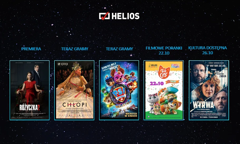 Październik to miesiąc pełen filmowych emocji! Szczegóły dotyczące wszystkich seansów dostępnych w aktualnym repertuarze można znaleźć na stronie www.helios.pl, w aplikacji mobilnej oraz w kasach kinowych sieci w całej Polsce.