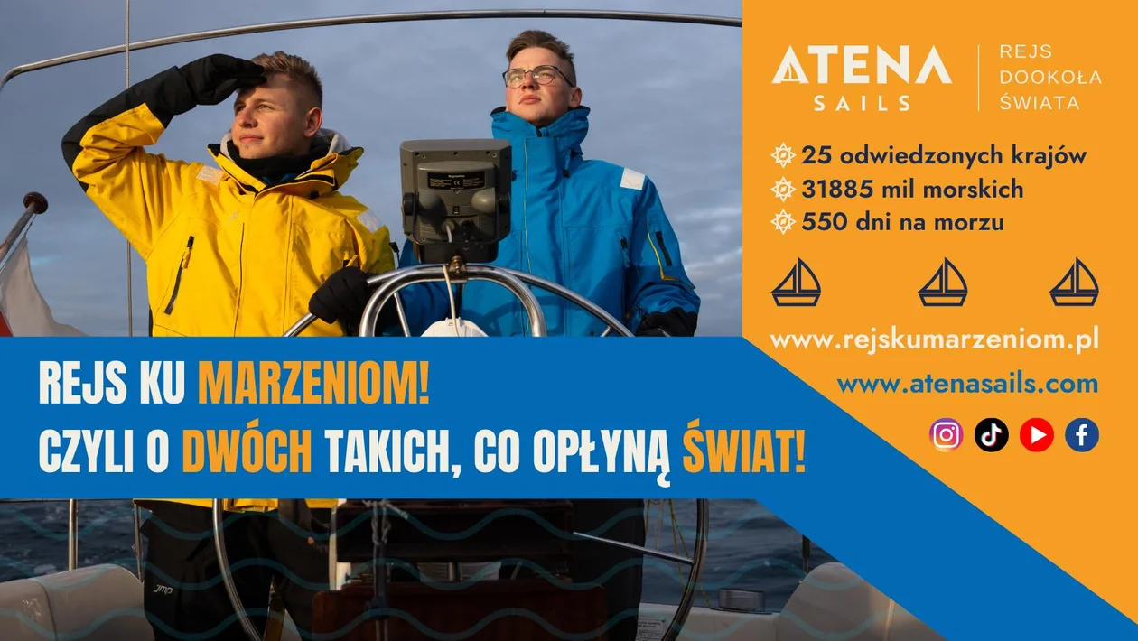 Daniel i Mikołaj, dwaj 23-latkowie z Łodzi, pasjonaci żeglarstwa, 1 października tego roku wyruszają z Gdańska w półtoraroczny rejs okołoziemski, trasą na zachód przez Kanał Panamski, a o ich planach więcej dowiecie się na stronie: www.rejskumarzeniom.pl