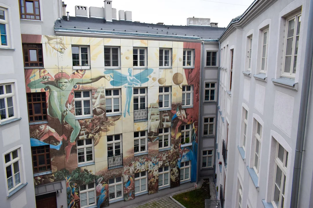 Jakie opowieści kryją łódzkie podwórka i kamienice? Wiele z nich jest łodzianom doskonale znana, inne ich tajemnice znają lub znali tylko niektórzy, wieloletni mieszkańcy naszego miasta. Podwórka, które odwiedziliśmy zachwycają artystycznymi instalacjami czy kolorowymi fasadami. Oprócz interesującego wyglądu, mogą „pochwalić się” intrygującymi historiami. Jednym z takich miejsc jest Pasaż Róży, podwórko kamienicy przy ulicy Piotrkowskiej 3 - jest ono jednym z najchętniej odwiedzanych w Łodzi. Co jest w nim takiego wyjątkowego? Niesamowity projekt autorstwa artystki Joanny Rajkowskiej, nawiązujący do choroby jej córki, Róży. Ściany podwórka kamienicy wyłożone są małymi kawałkami luster. Zdecydowanie warto odwiedzić to miejsce - szczególne wrażenie robi ono w słoneczny dzień lub po zmroku, przy zapalonych lampach. Inną ciekawą elewację możemy oglądać przy ulicy Więckowskiego 4 w „Artystycznym Podwórku Wojciecha Siudmaka – Narodziny Dnia”. Łódzkie podwórka to także świetna lokalizacja dla restauracji czy kawiarni - lubiane przez łodzian miejsca to na przykład "Niebostan" przy Piotrkowskiej 17 czy "Przędza" znajdująca się pod numerem 107 .