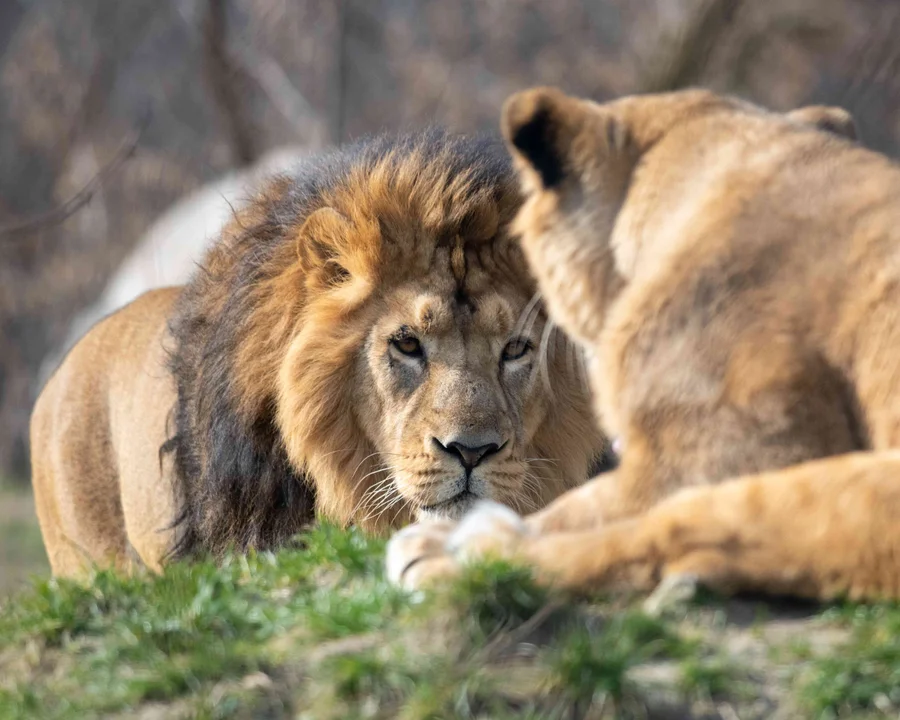 W ogrodzie żyją trzy lwy azjatyckie: Tycia, Loki i Shiva. Tycia jest najstarszym z łódzkich lwów, niedawno skończyła 18 lat i jest już kocią seniorką. Shiva i Loki, para hodowlana, mnóstwo czasu spędza w swoim towarzystwie. Lwy azjatyckie, nieco mniejsze od tych afrykańskich, nic a nic nie ustępują im temperamentem.