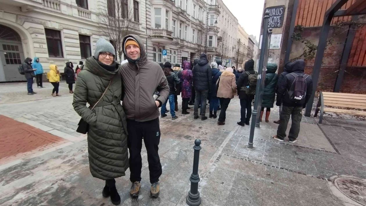 Uczestnicy spaceru spotkali się na ul. Włókienniczej. Pierwszym przystankiem była słynna, niedawno odrestaurowana płaskorzeźba, czyli "Kochankowie z ulicy Kamiennej".