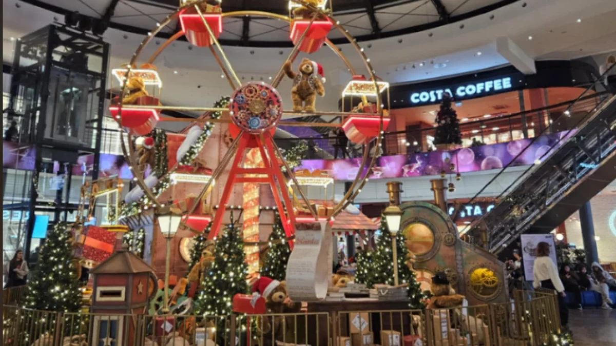 „Zakręcony” Jarmark w Manufakturze: Tutaj świąteczny klimat łączy się z wielkomiejskim stylem. Oprócz stoisk, czeka tu na Was wielkie koło młyńskie, z którego możecie podziwiać panoramę oświetlonego miasta. To idealne tło do pamiątkowego zdjęcia!