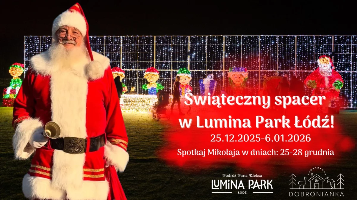 Odwiedziny Świętego Mikołaja w Lumina Park Łódź to doskonała okazja, aby poczuć magiczny, świąteczny klimat w świetlnej scenerii. W tym sezonie Dobroniankę po raz pierwszy rozświetla motyw „Podróży Pana Kleksa”, a na odwiedzających czeka ponad 200 instalacji świetlnych na trasie, pełnej efektów specjalnych, multimediów i interaktywnych atrakcji.