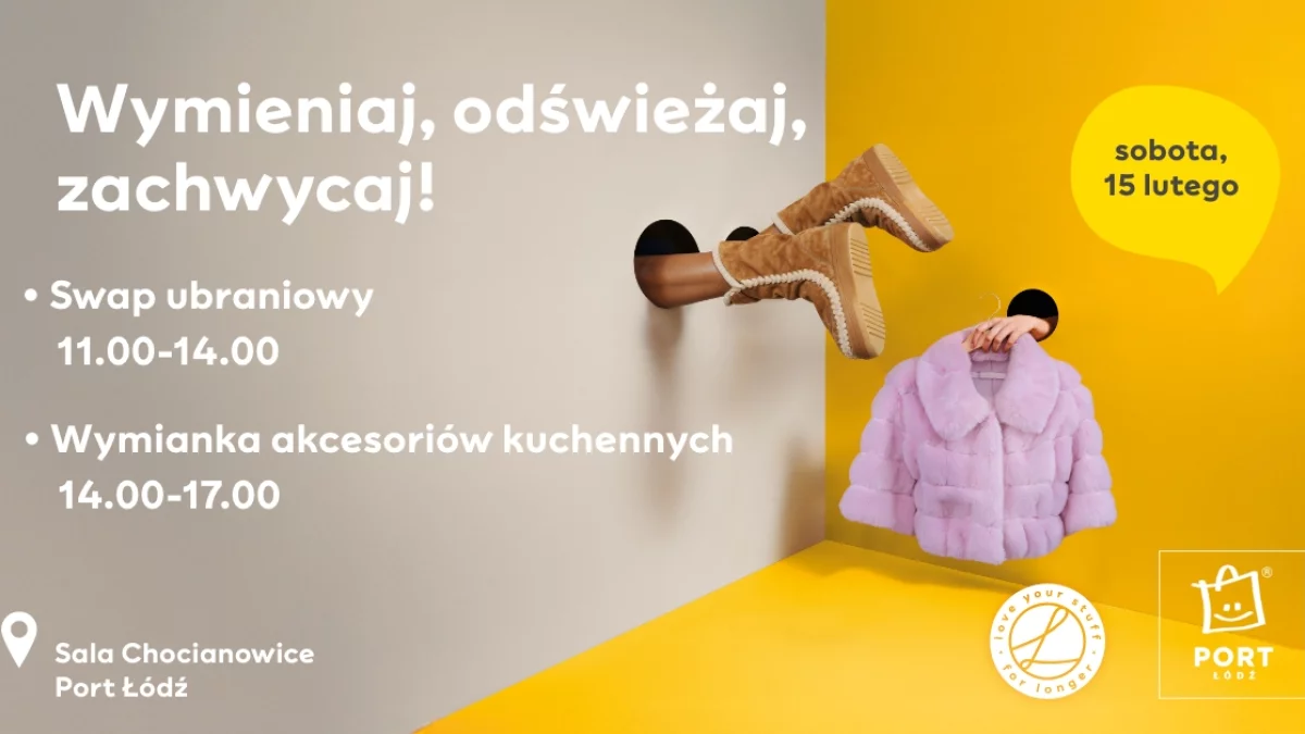 Swopping w Porcie Łódź to propozycja dla wszystkich, którzy chcą dać drugie życie swoim nieużywanym już przedmiotom i ograniczyć nadmiar rzeczy. Wydarzenie podzielone będzie na dwie części: