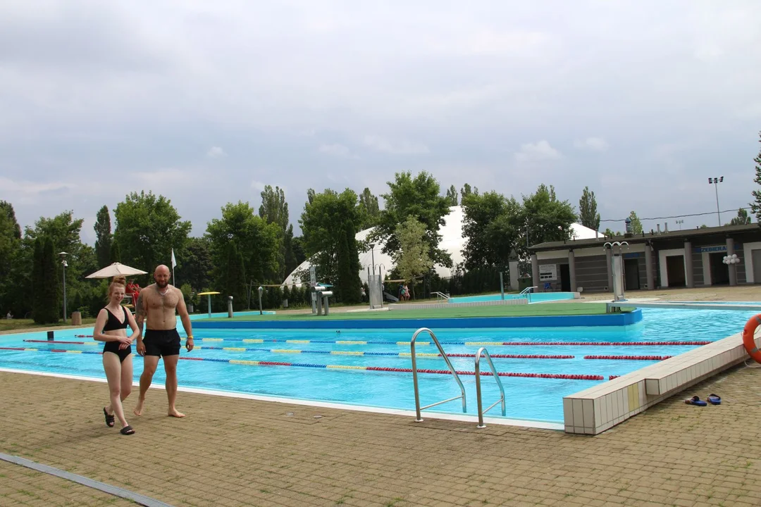Pływalnia sezonowa to z kolei niecka o długości 25 metrów z czterema torami (głębokość wynosi o 1,30 do 1,80 m), wyspa i płytsze zakole to z kolei 0,9 m głębokości. Jest taż mała zjeżdżalnia, brodzik dla maluchów i tak jak w krytej pływalni urządzenia typu grzybek, gejzer i bicz wodny.