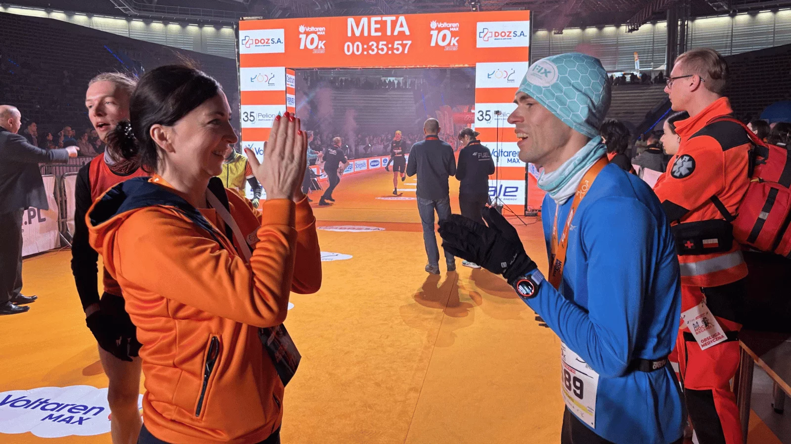 Pogoda od niedzielnego poranka (6 kwietnia) była dla wielu maratończyków naprawdę mało łaskawa. Odczuwalna temperatura wynosiła około -10 stopni, momentami można było czuć mroźny powiew wiatru, a zachmurzenie mogło przynieść nawet deszcz. Mimo panującej aury wszyscy zwarli i gotowi stanęli na starcie i ruszyli. W biegu pełnym wyzwań pomogła także energiczna rozgrzewka oraz wsparcie kibiców. Rodzina, przyjaciele oraz łodzianie - wiwatujących tłumów nie brakowało.Pierwsi zawodnicy biegu na 10 kilometrów pojawili się w Atlas Arenie tuż po 9:30. Tuż po otwarciu bram było już jasne - za chwilę zobaczymy pierwszych zwycięzców, choć warto podkreślić, że w maratonie każdy uczestnik jest wygranym. Nie liczy się czas, a dobra zabawa - podkreślają organizatorzy.