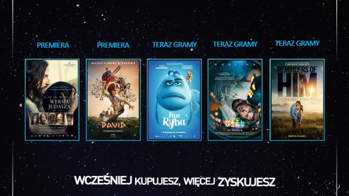W repertuarze znajdą się także najpopularniejsze tytuły ostatnich tygodni, w tym liczne propozycje dla widzów w każdym wieku. „Pan Ryba” to pełna humoru animacja o zrzędliwym samotniku mieszkającym na wraku statku. Jego spokojne życie zostaje wywrócone do góry nogami, gdy poznaje energiczną Isię – ciekawskiego konika morskiego. Wspólna podróż bohaterów zamienia się w niezwykłą przygodę, która uczy ich współpracy i otwartości na innych.