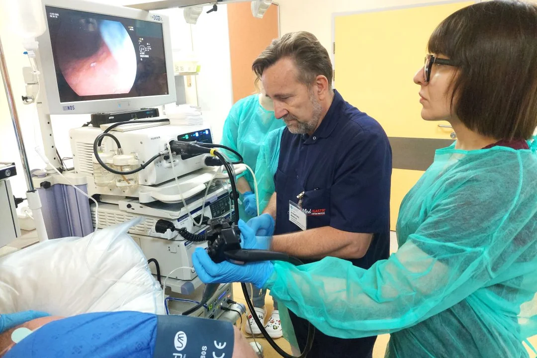 - Zabieg wykonał dr n. med. Arkadiusz Mamos, kierownik Zakładu Diagnostyki i Terapii Endoskopowej. Pomaga on w redukcji masy ciała, a tym samym zmniejsza ryzyko powikłań, na przykład kardiologicznych czy rozwoju cukrzycy. Zabieg wykonuje się w krótkotrwałym znieczuleniu dożylnym, dzięki czemu pacjent nie odczuwa dyskomfortu.