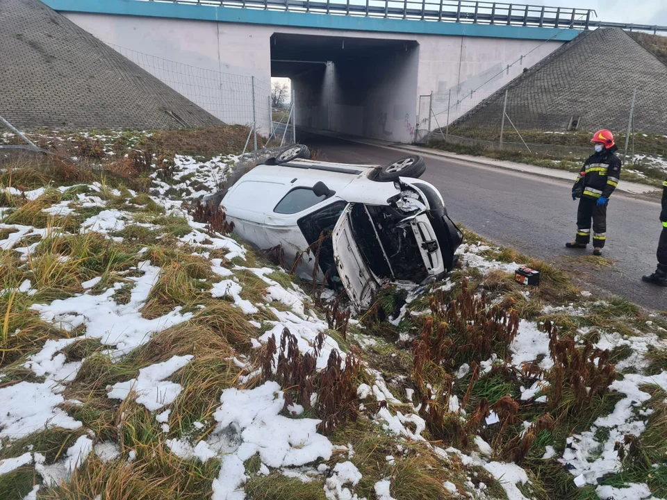 Do wypadku doszło w środę rano pod wiaduktem w miejscowości Jeżewo, w gminie Zgierz. Kierowca stracił panowanie nad pojazdem w wyniku czego dachował.