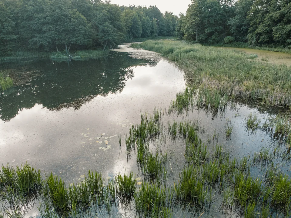 - Szerokie trasy idealne na przejażdżki rowerowe, sporo kaczek i ślady działalności bobrów