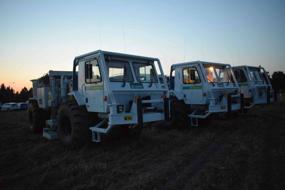 - W dłoni trzymam geofon, czyli mikrofon geologiczny. Te geofony są rozłożone wzdłuż całej trasy, którą przejadą pojazdy. I one rejestrują wibracje, które te samochody będą wysyłały w głąb ziemi. Następnie skały odbijają ten sygnał, a każdy z geofonów będzie rejestrował dane geofizyczne.