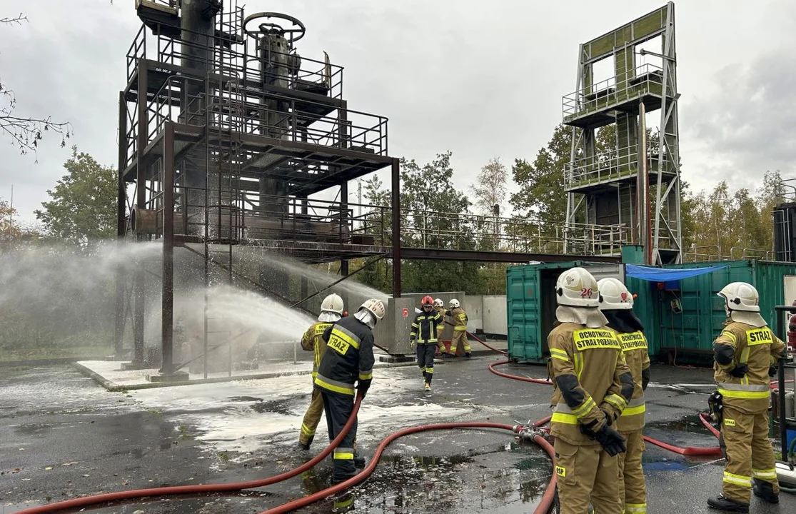 Jednym z elementów szkolenia było gaszenie instalacji petrochemicznej.
