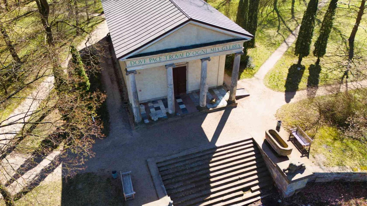 W ogrodzie odnajdziemy wiele zabytkowych budowli – nie tylko pięknych, ale też pełnych znaczeń.