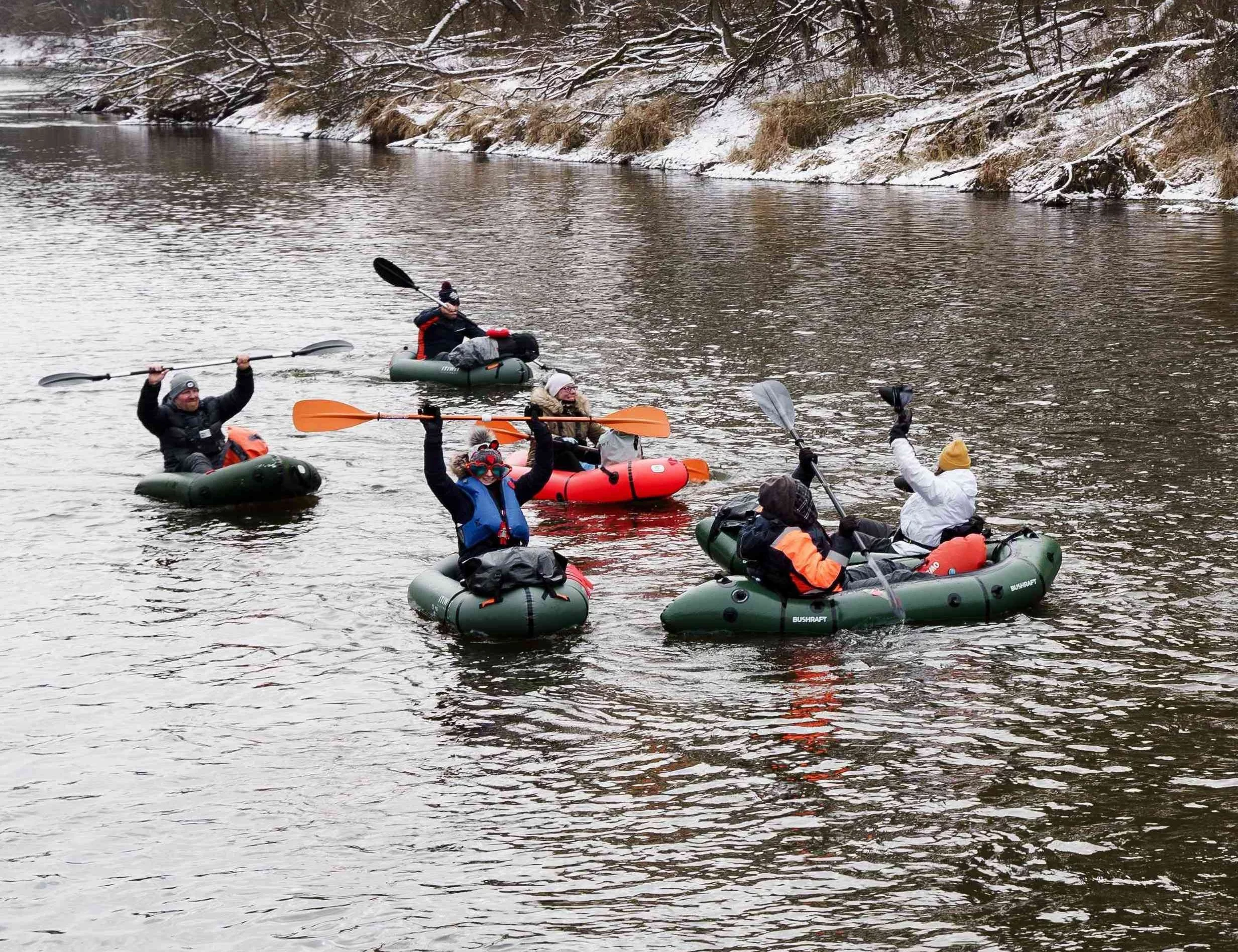 Zimowe pływanie kajakiem nazywa się packraftingiem.