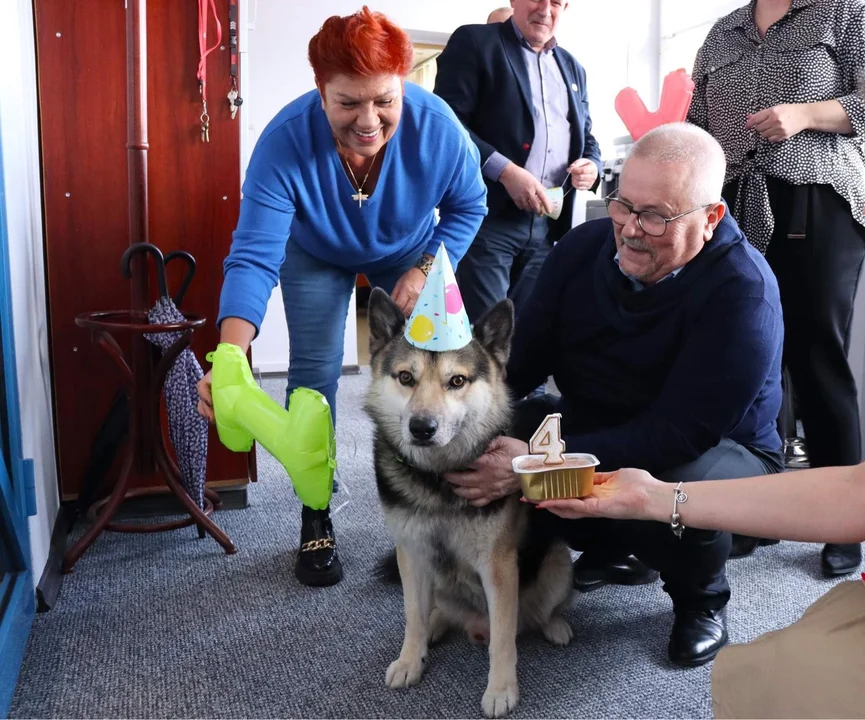 Z tej okazji pracownicy UM Łęczyca zamieścili wpis poświęcony ich czworonożnemu przyjacielowi. Jak przypominają cztery lata temu Czako, który dotychczasowe życie spędzał na łańcuchu, znalazł dom w Urzędzie Miejskim.