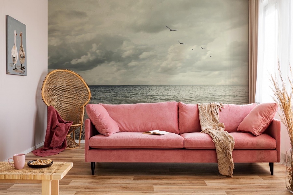 W związku z tym, że fototapeta utrzymana jest w stonowanej, szarej kolorystyce, doskonale będzie się prezentować w towarzystwie bardzo modnego w tym sezonie brudnego różu. Kanapa o tapicerce właśnie w tym odcieniu sprawi, że morski pejzaż nabierze romantycznego charakteru, a cała aranżacja stanie się bardzo przytulna. Świetnym akcentem, pasującym idealnie do nadmorskiego klimatu, będzie wiklinowy fotel o dużym, szerokim oparciu – perfekcyjny do czytania książki w długie, jesienne wieczory. Jego dodatkową zaletą jest to, że będzie przywodził na myśl dawne kosze plażowe, w których można było przesiadywać, będąc osłoniętym od wiatru. – powiedział nam ekspert.