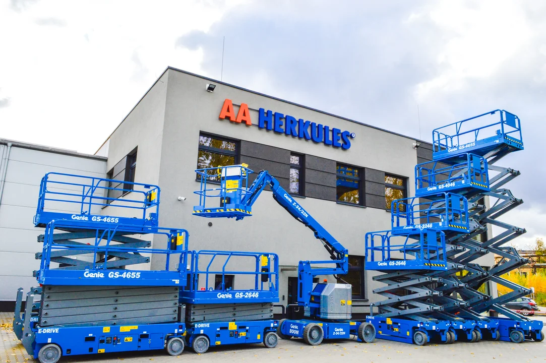 Atutem wypożyczalni AA HERKULES jest jej rozbudowana flota, która obejmuje szeroką gamę urządzeń podnośnikowych. Klienci mogą wynająć w niej zwyżki nożycowe, przegubowo-teleskopowe, masztowe lub gąsienicowe o zróżnicowanych wysokościach roboczych i udźwigach - maszynę można dopasować do praktycznie każdego miejsca pracy.Niedawno do oferty firmy dołączyły nowe sprzęty, w tym Haulotte HA16 RTJ PRO, Manitou 100VJR, Genie Z45/25DC, Genie 2632, Genie 3246, JLG Toucan 12E Plus, Genie GS4655, Genie GS2646, Genie GS4046 oraz GENIE GS-1330m.