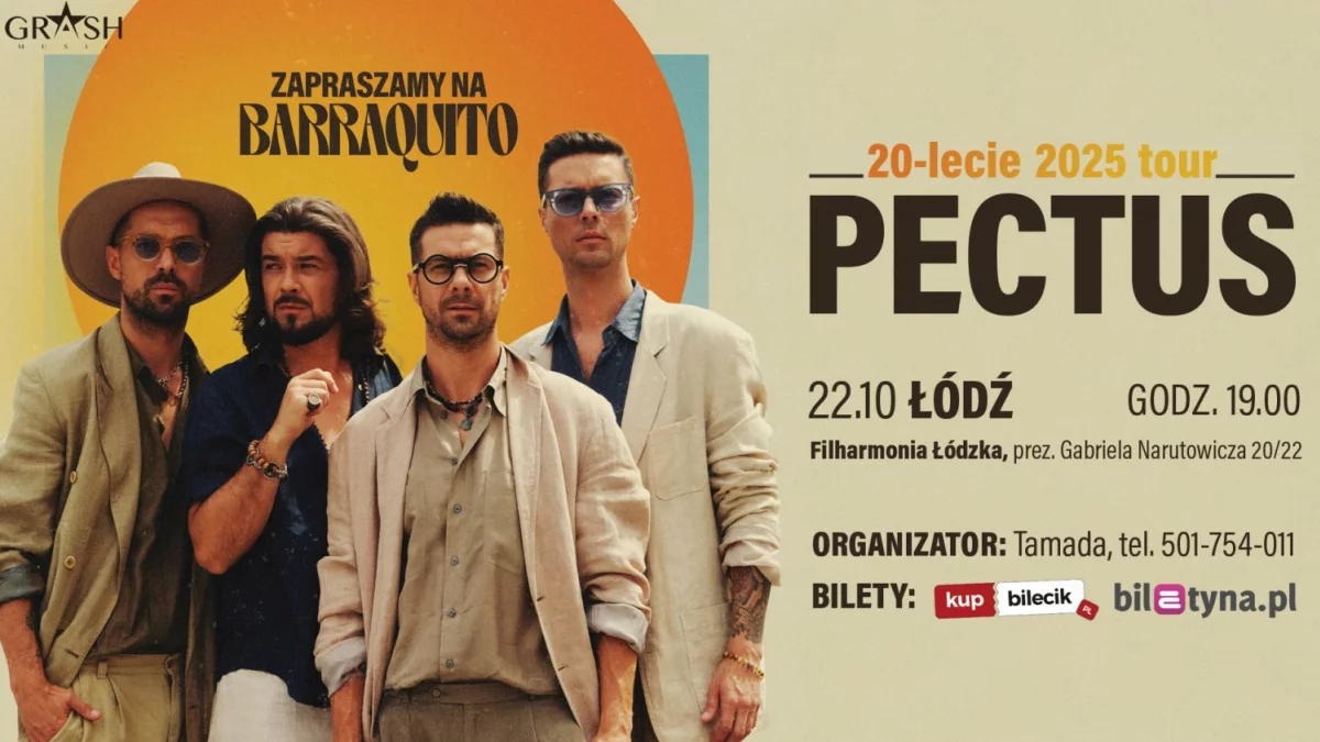 Zespół Pectus zaprasza na wyjątkowy koncert w ramach jubileuszowej trasy „20-lecie 2025 Tour”. Już 22 października o godzinie 19:00 w Filharmonii Łódzkiej usłyszymy największe przeboje zespołu oraz wyjątkowe aranżacje przygotowane specjalnie na tę okazję. To niepowtarzalna szansa, by wspólnie świętować dwie dekady obecności Pectus na polskiej scenie muzycznej.