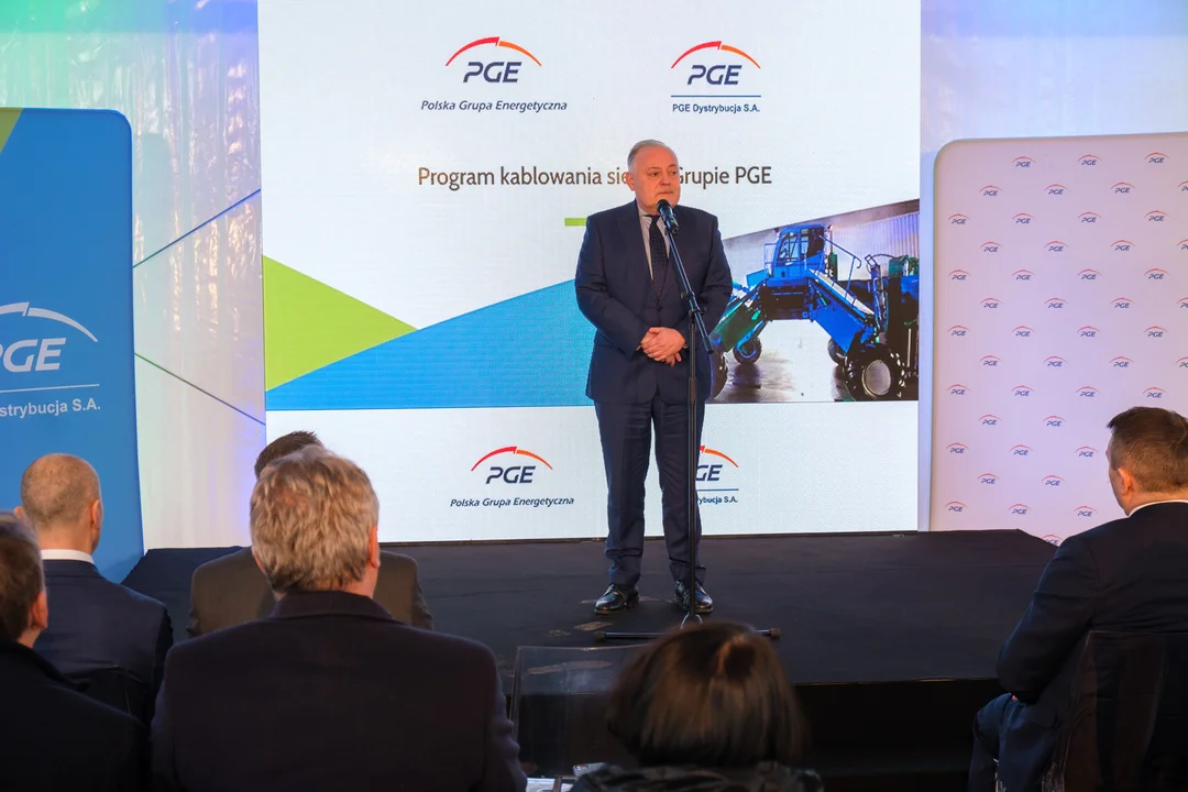 „Od czterech lat w Grupie PGE realizujemy strategiczny program kablowania sieci średniego napięcia. Do 2026 roku planujemy przekroczyć 30 proc. udziału podziemnych sieci. Oznacza to, że w ciągu 3 lat na naszym obszarze dystrybucyjnym skablujemy ponad 9 tys. km sieci, przy jednoczesnym demontażu ponad 7 tys. km istniejących linii napowietrznych – mówi Wojciech Dąbrowski, prezes zarządu PGE Polskiej Grupy Energetycznej. - Na potrzeby realizacji programu zakupiliśmy pierwszą w Polsce, specjalistyczną, nowoczesną maszynę, która jest w stanie ułożyć nawet 5 km linii kablowej dziennie. Pozwala to na zdecydowane przyspieszenie realizacji inwestycji. Wymierną korzyść stanowią także niższe koszty, niż w przypadku tradycyjnej metody układania kabli” – dodaje Wojciech Dąbrowski.