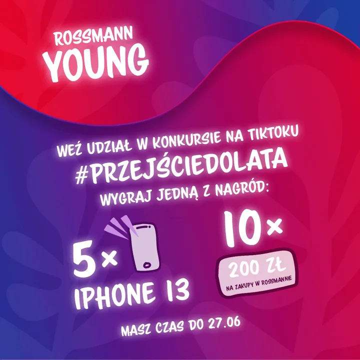 W opisie TikToka, który jest zgłoszeniem konkursowym, należy użyć hasztagów: #PrzejścieDoLata i #RossmannYoung. Do filmu trzeba użyć utworu „Lato w Rossmannie”, który jest dostępny na TikToku.