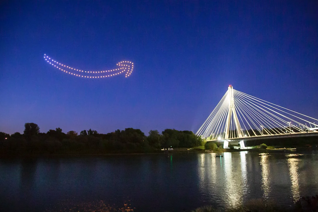 Warszawa, 4 lipca 2022 – Amazon słynie z tego, że jako pierwszy inicjuje wiele innowacyjnych i kreatywnych rozwiązań. Kindle, opinie klientów, zakupy za pomocą jednego kliknięcia, spersonalizowane rekomendacje, Prime czy Alexa to tylko niektóre z produktów i rozwiązań, które wprowadził na świecie jako pierwszy. Kolejnym jest Amazon Prime Day, festiwal okazji dla klientów Prime, który w tym roku odbędzie się także w Polsce. Z okazji tego debiutu Amazon zorganizował specjalny pokaz dronów, aby zapowiedzieć nadchodzące wydarzenie zakupowe, znajdując innowacyjny sposób na promowanie tegorocznych dat Prime Day - 12 i 13 lipca. Pokaz dronów miał miejsce w Warszawie, nad brzegiem Wisły i przyciągał wzrok przechodniów.