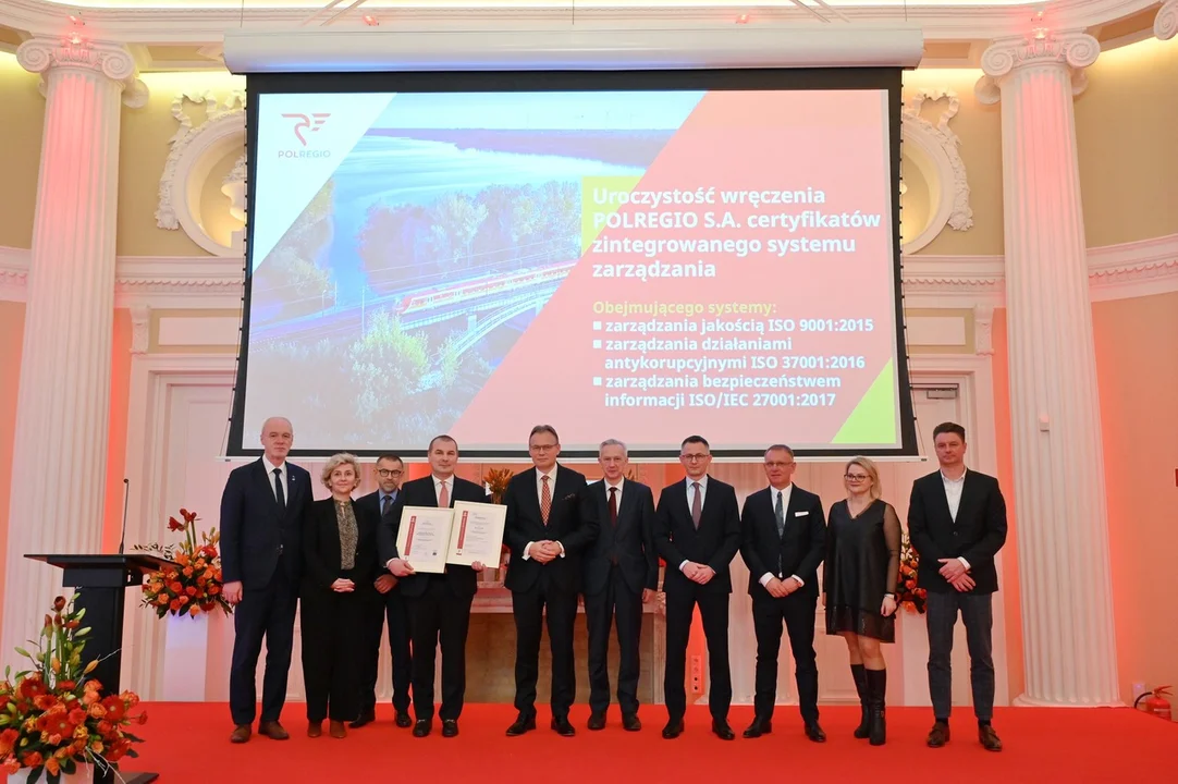 „W Polregio wyznajemy zasadę kompleksowego rozwoju na wielu płaszczyznach. Tak jest również w przypadku certyfikatów ISO. W naszym przypadku odnoszą się one do zarządzania jakością, utrzymywania bezpieczeństwa informacji w spółce oraz zapobiegania wszelkim zjawiskom korupcyjnym” - oświadczył Artur Martyniuk, prezes Polregio S.A. i dodał, że starania o otrzymanie certyfikatów rozpoczął na początku swojej kadencji na stanowisku prezesa tej firmy.
