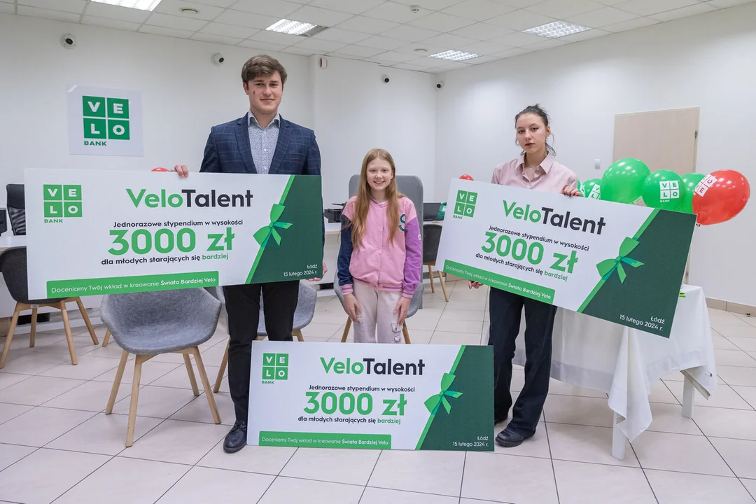 Otwarcie jubileuszowej 150. placówki VeloBanku uczczono wręczając trójce łodzian stypendia finansowe. To szczególnie utalentowani, młodzi ludzie, którzy bezkompromisowo rozwijają swoje pasje, jednocześnie angażując się w działalność społeczną. Każda z wyróżnionych osób otrzymała grant w wysokości 3000 zł, który będzie mogła przeznaczyć na cele związane ze swoimi uzdolnieniami. Czeki wręczyła Agnieszka Mąkosa, Dyrektorka Regionalna w VeloBanku.