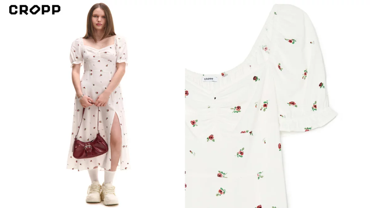 Na kwietniowe spotkania szczególnie polecamy sukienki o długości midi – klasyczny fason z odcięciem pod biustem i lekko rozszerzającą się spódnicą pasuje doskonale na każdą sylwetkę. Rozcięcia z boku nie wyszły z mody – możesz na nie postawić, by się nieco optycznie wydłużyć.