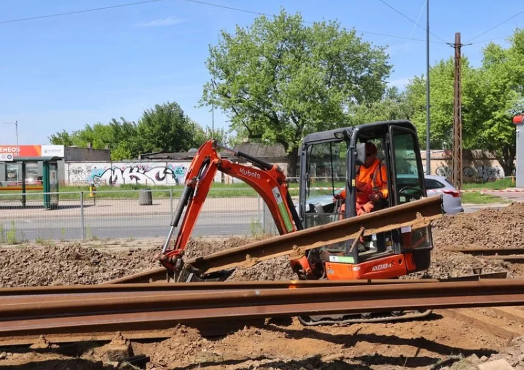 Prace na skrzyżowaniu Legionów z al. Włókniarzy odbywają się w ramach przebudowy linii tramwajowej do Konstantynowa Łódzkiego.
