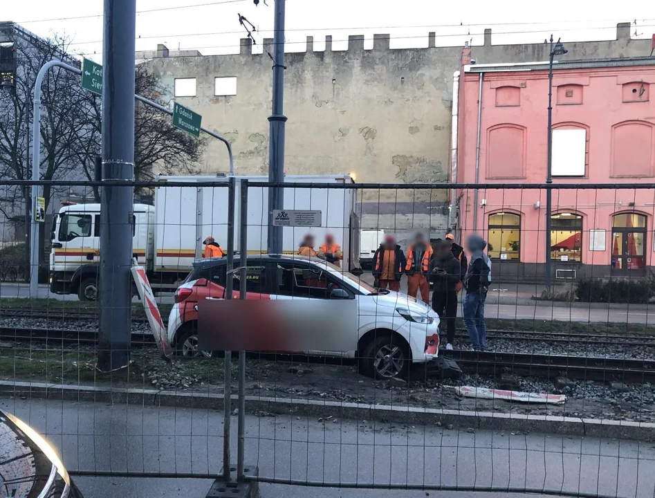 Wszystko przez auto, które centralnie wjechało na torowisku.