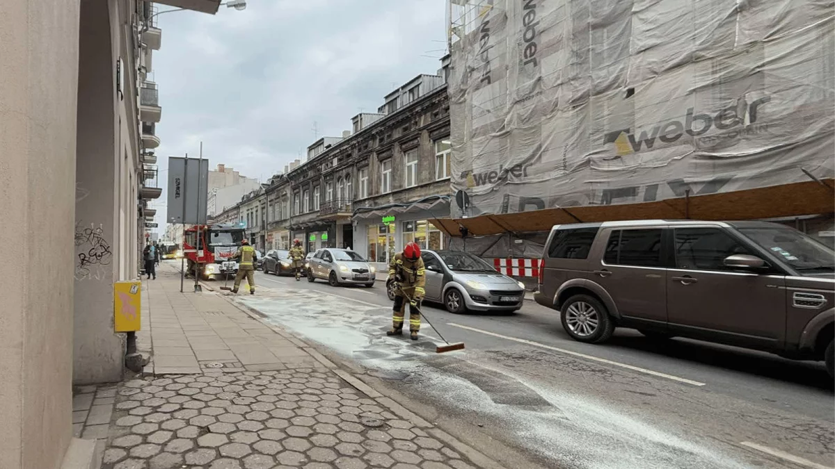 Wyciek oleju na ulicy Więckowskiego w Łodzi - służby postawione na nogi