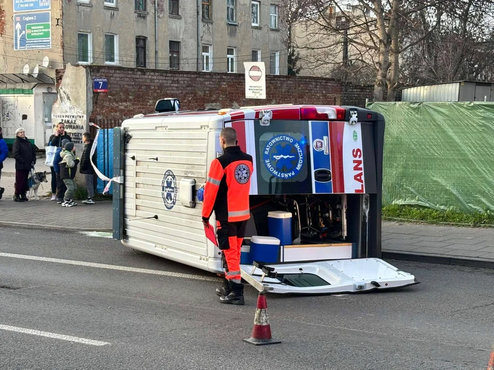 Ambulans przewrócił się na bok