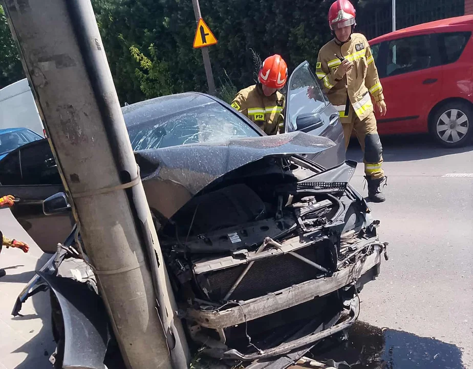 Ciemne bmw z ogromnym impetem wjechało w słup i niemal owinęło się wokół latarni. Do groźnie wyglądającej kraksy doszło w środę 16 lipca na ul. Śląskiej, na wysokości ul. z Niskiej w Łodzi.