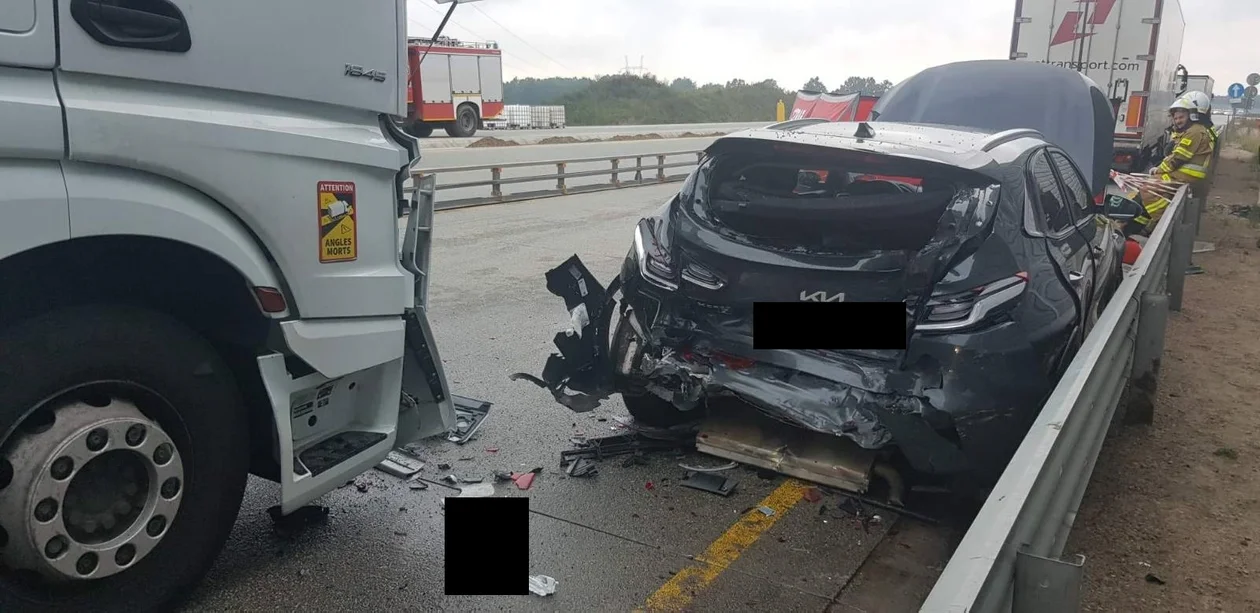 Do śmiertelnego wypadku doszło tuż po godz. 4 w miejscowości Parzniewice na 365 km autostrady A1 w stronię Gdańska. Z ustaleń policji wynika, że 56-leni kierujący ciężarowką z naczepą, z nieustalonych przyczyn najechał na samochód marki Kia. Śmierć poniosła 49-letnia pasażerka osobówki. Natomiast nastoletnie dziecko przewiezione zostało do szpitala.