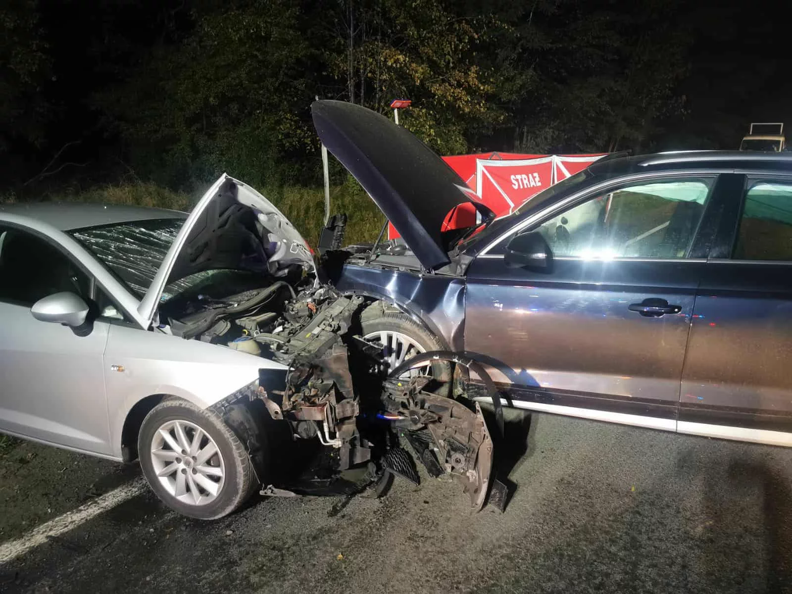 Dwie pasażerki seata (9-letnia dziewczynka i 58-letnia kobieta) oraz pasażer audi zostali przewiezieni do szpitala. Kierowca audi był trzeźwy. Na miejscu pracują policjanci z Wydziału Ruchu Drogowego Komendy Powiatowej Policji w Zgierzu.