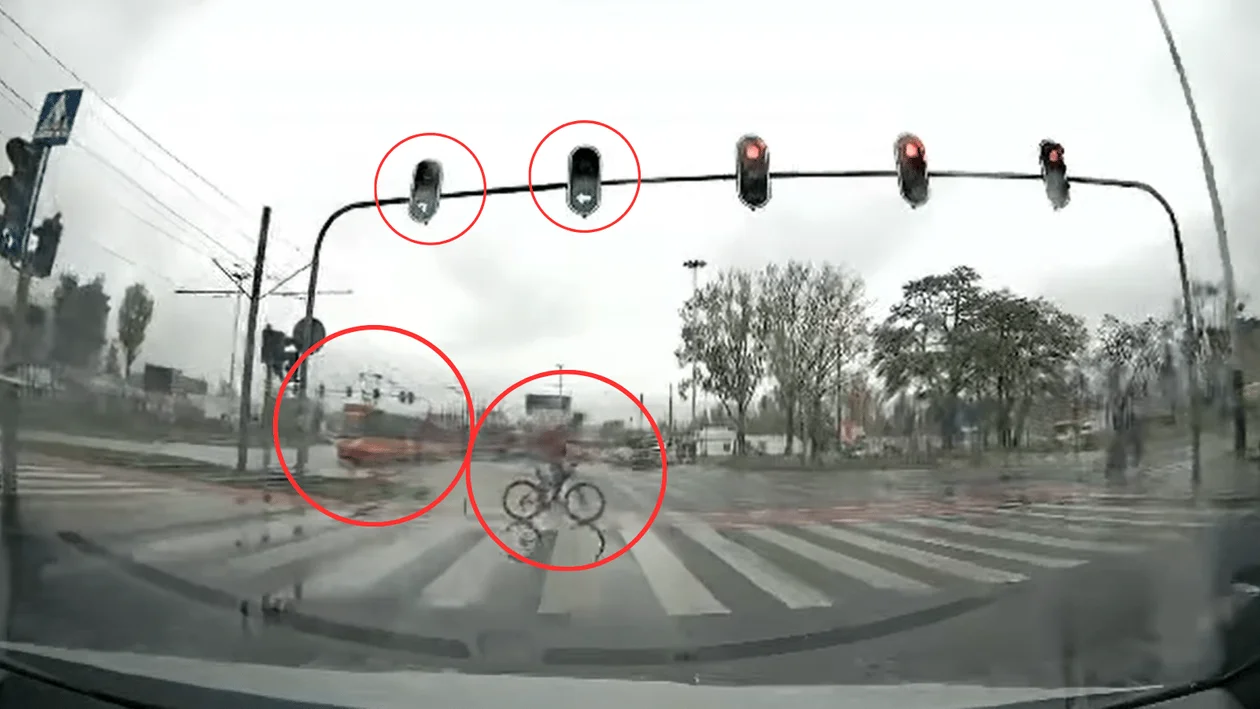 Opisem do filmu była wprost postawiona teza, że rowerzysta przejechał na czerwonym, wątpliwość pojawiła się w przypadku tramwaju.